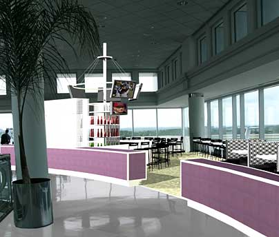 demises the bar dining area from concourse circulation